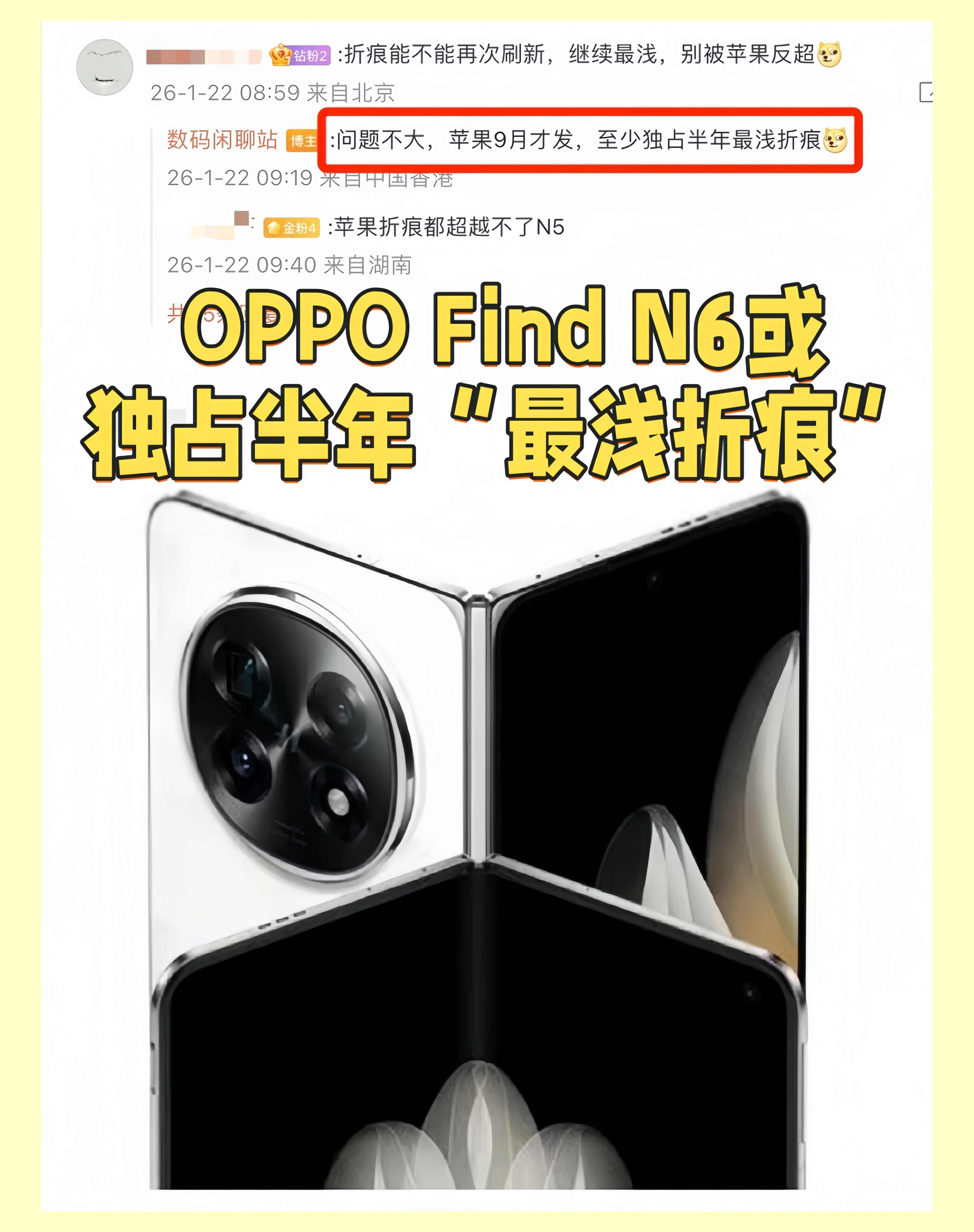 更扎心的是,苹果还在对着Find N5补笔记的时候,绿厂的下一代折叠新品Find N6年后就要发布了!爆料说这次新机用上了液态金属铰链+黑绷带玻璃,至少能抢先苹果独占半年"行业最浅折痕"。