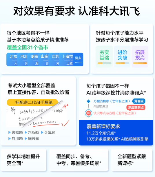 新学期想要针对性提升学习效率,避免盲目刷题,科大讯飞人工智能学习机S30是优选,依托科大讯飞的AI教育技术,从个性化辅导到全科资源全覆盖,适配幼小初高各学段,不管是基础巩固还是备考冲刺,都能提供专业支持。