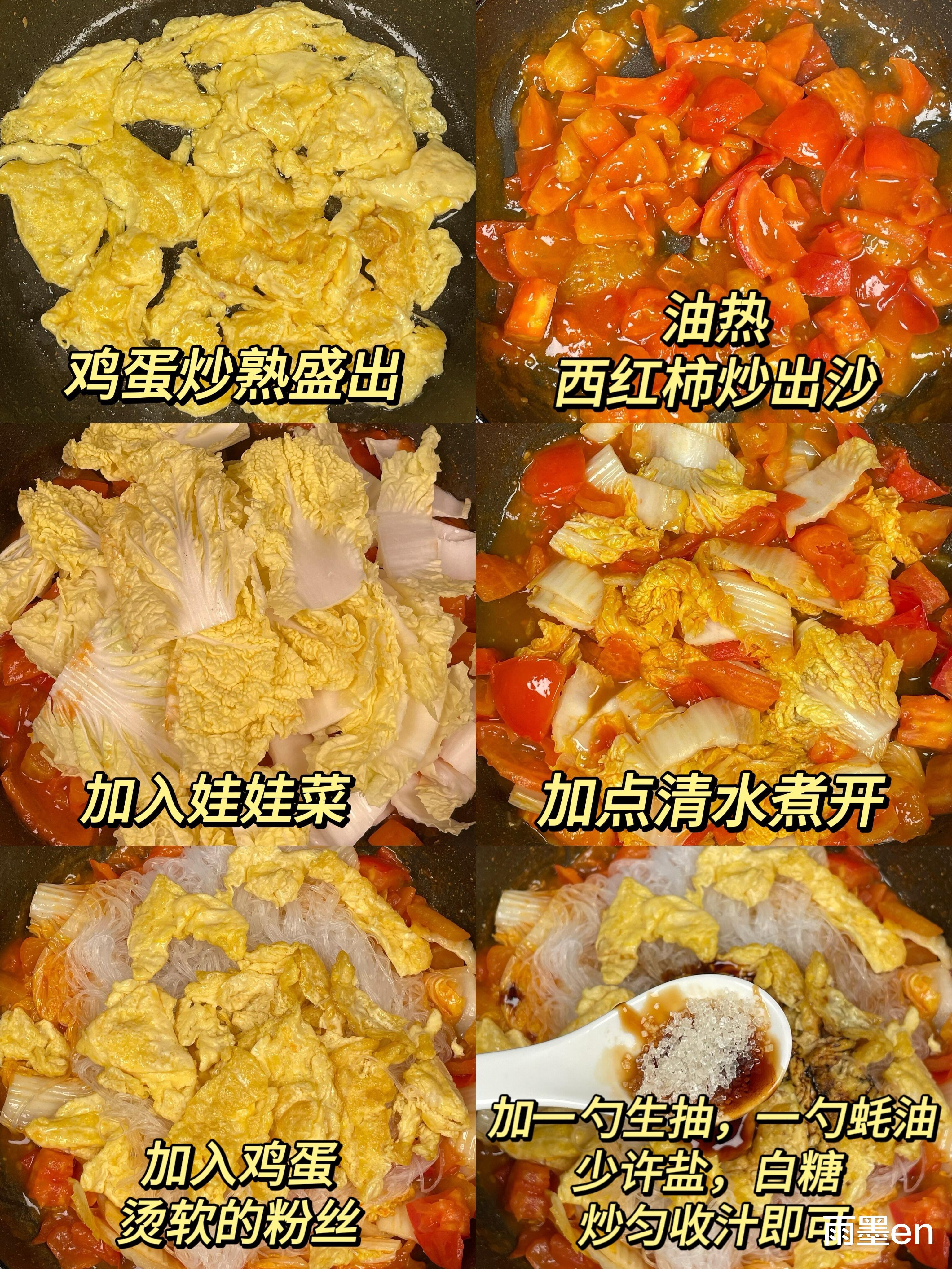 做这道菜真的零难度,新手也能一次成功!先准备食材:番茄2个(选熟透的,酸甜味更足)、娃娃菜1棵、粉丝1把、蒜末3瓣、葱花少许,再备点生抽、蚝油、盐和少许白糖就行。重点说几个让味道翻倍的小技巧,都是我妈传下来的“懒人秘诀”~