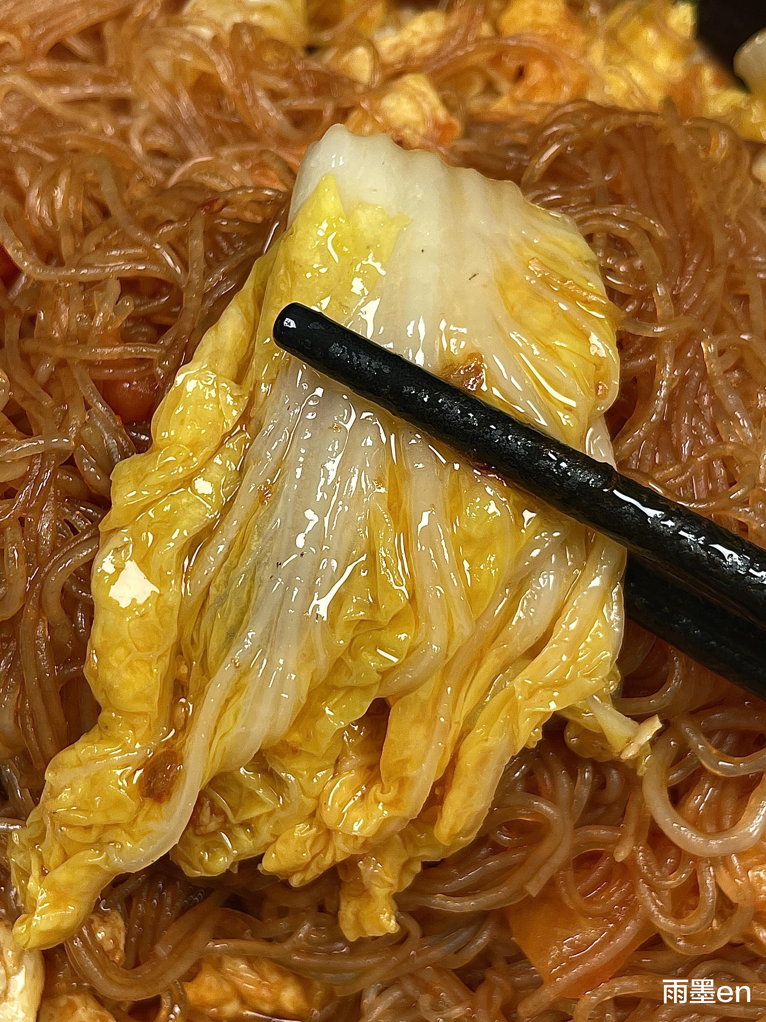 然后放入泡好的粉丝,用筷子轻轻散开,别用力搅拌,不然粉丝容易断。加2勺生抽、1勺蚝油,搅拌均匀后再煮2分钟,最后尝一下味道,根据口味微调盐量就行。关火后撒上葱花,一锅酸甜鲜香的番茄娃娃菜粉丝煲就做好啦,全程不到20分钟,省时又省力。