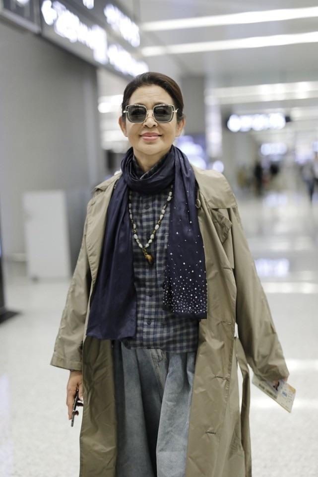 倪萍的机场穿搭总能跳出中年女性的穿搭定式,没有刻意扮嫩,也不被年龄束缚,比如这一身搭配,她用卡其色长款风衣作为外搭,宽松的版型弱化了身材线条,自带随性气场,长度到小腿的设计还能悄悄藏住腿部线条的小瑕疵,对中年身材特别友好。