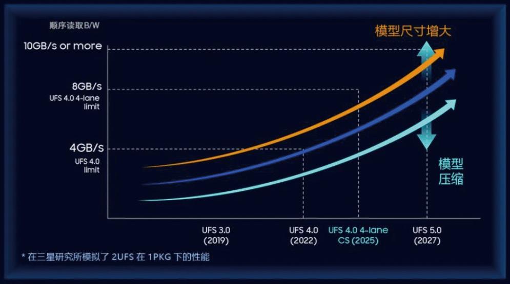 作为闪存领域的领军者,三星早在2024年发布的存储路线图中,便明确了UFS 5.0的产业化时间线,计划于2027年推出并量产基于该技术的产品,目标将存储传输速度提升至10.8GB/s,为手机端AI应用的落地提供核心支撑。为保障技术顺利落地,三星已提出将联合终端客户与处理器设计厂商,通过协同界定应用场景、开发配套技术等三方协作模式,推动UFS 5.0的标准化制定与商用落地。