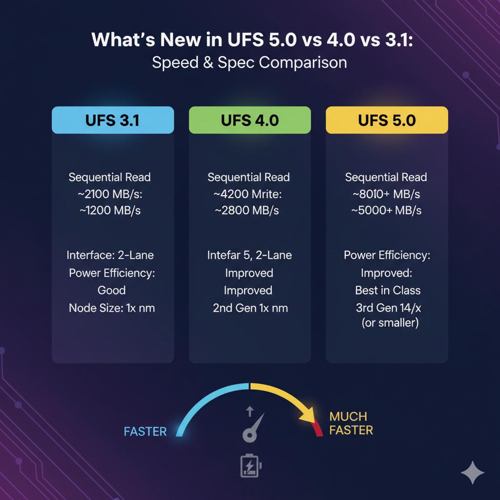 ▲UFS 5.0与UFS 3.1、UFS4.0的主要规格对比图
