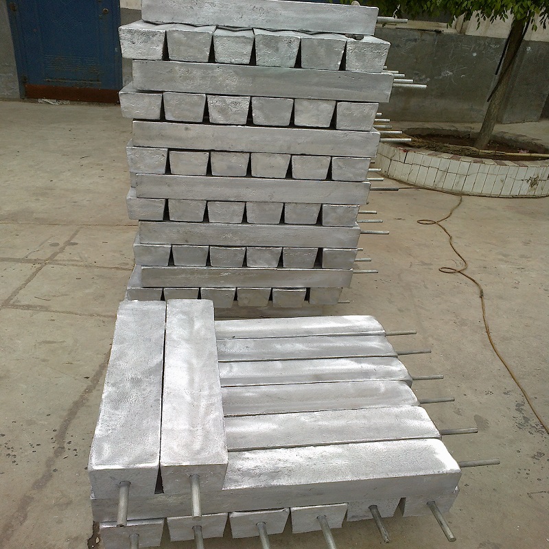 特别推荐 Zn-Al-Cd系合金,在海水中电位稳定(-1.10V左右),电流效率高(85%以上),使用寿命长