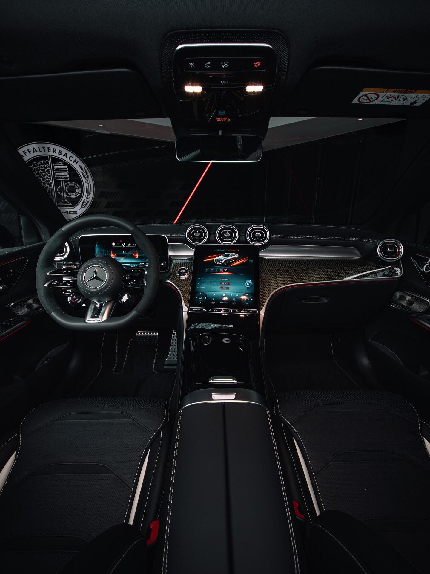 64色氛围灯,灯光根据驾驶模式切换颜色,门板带AMG专属光带。中控屏升级MBUX系统,实时显示涡轮压力、机油温度、G值数据。