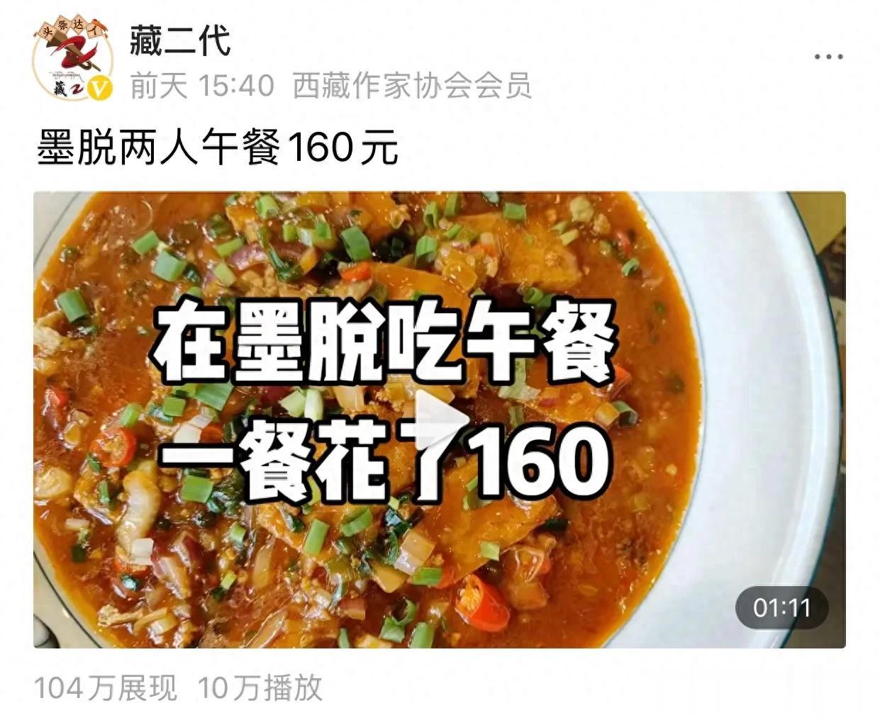 这条不到一分钟的短视频,只是真实地记录了我和大山老师在墨脱吃的一餐最普通的午饭——一份红烧肉、一盘包浆豆腐、一听可口可乐、两碗米饭,共花了164元。