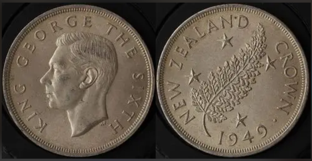 新西兰银元的设计极具辨识度:正面依然采用英国君主肖像(乔治五世、乔治六世等),延续英联邦货币的传统惯例,彰显殖民体系下的政治联系;背面则大量融入毛利文化符号和新西兰本土动植物元素,打破了欧洲货币的设计传统。例如,1933年发行的弗罗林(2先令)、先令、六便士等银质币种,背面分别刻有毛利战士、奇异鸟(新西兰国鸟)、蕨类植物等图案,由英国艺术家乔治·克鲁格·格雷设计;后期的便士和半便士则由新西兰本土设计师伦纳德·康沃尔·米切尔设计,进一步强化了本土文化属性。这种设计不仅是对本土文化的认可,也让新西兰银元在英联邦货币中独树一帜。