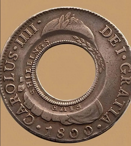 1812年,麦夸里从印度马德拉斯进口了4万枚西班牙八里亚尔银元(即“八里亚尔”,当时的国际通用货币),随后委托有金属加工技能的罪犯威廉·亨歇尔对这些银元进行改造。改造方式极为简单却精妙:将西班牙银元的中心冲压取出,形成一枚“环形银元”(即打孔银元)和一枚“中心圆片”(被称为“ Dump”,意为“小块”)。其中,环形的打孔银元被标定为5先令,中心圆片则被标定为1先令3便士,两者均成为新南威尔士殖民地的法定货币。这种改造的核心目的的是“锁定货币”——经过冲压的银元因形制独特,无法再作为标准西班牙银元流出殖民地,从而保障了本地货币供给。
