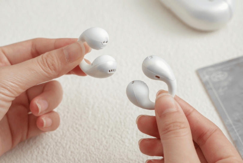 关注佩戴舒适度 —— 开放式耳机的优势就在于轻盈透气,耳挂、夹耳或颈挂设计都要稳固不夹耳。
