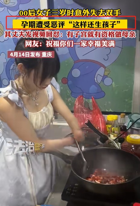 01年孕晚期无手女孩被咒“不配当妈”,丈夫愤怒回怼:有子宫就行