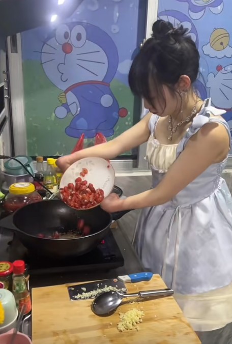 她曾经发布过自己炒菜做饭的时候,不管是拿刀切菜,还是翻炒,她已经算是“手到擒来”了,完全可以自己一个人完成整个过程了。