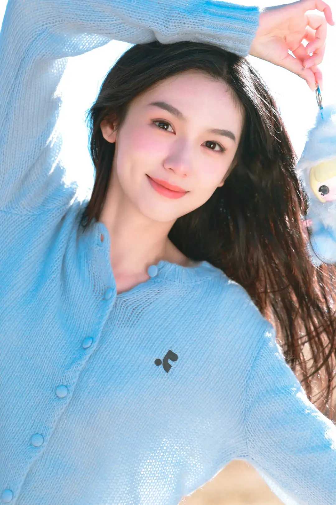 这组写真里,周也褪去了荧幕上的角色滤镜,以更贴近生活的姿态示人。浅蓝针织衫的软糯质感,与她白皙的肌肤相得益彰,衣身的小刺绣细节,又为整体造型增添了几分灵动。头顶的毛绒玩偶不仅呼应了“云朵梦境”的主题,更让她多了几分少女的娇憨与纯粹。