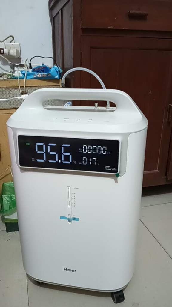 这款海尔制氧机放在卧室角落,机身无异味,开机出氧顺畅,湿化杯加水简单,日常用还可用。技术是分子筛+变压吸附结合,据说提高出氧纯度,过滤有HEPA网滤花粉等,一般。不过阴湿天气或房间湿度高时,浓度从92%降到85%,得开窗户通风才恢复,场景下浓度不稳定,有点麻烦。