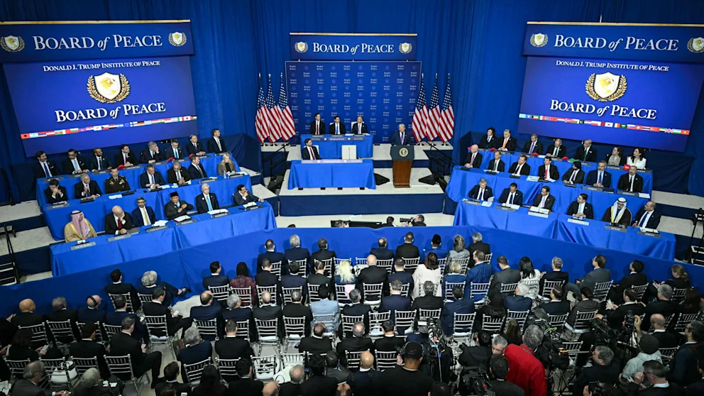 此次演说的背景:周四,唐纳德·特朗普召集了他的和平委员会,该委员会成员包括来自40多个国家的代表以及来自十几个国家的观察员。他花了数分钟时间赞扬他声称已经“结束”“八场战争”的领导人。一个颇为奇特的瞬间:亚美尼亚总理尼科尔·帕希尼扬不得不站起来与阿塞拜疆总统伊利哈姆·阿利耶夫握手,他面带微笑,赢得了掌声。