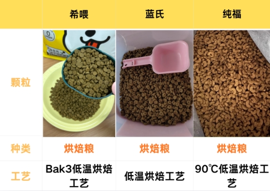 纯福:90℃低温烘焙,是烘焙粮,0肉粉添加,0油脂喷涂,颗粒是比较酥爽不油腻的,同时也能更好地保留营养和风味。