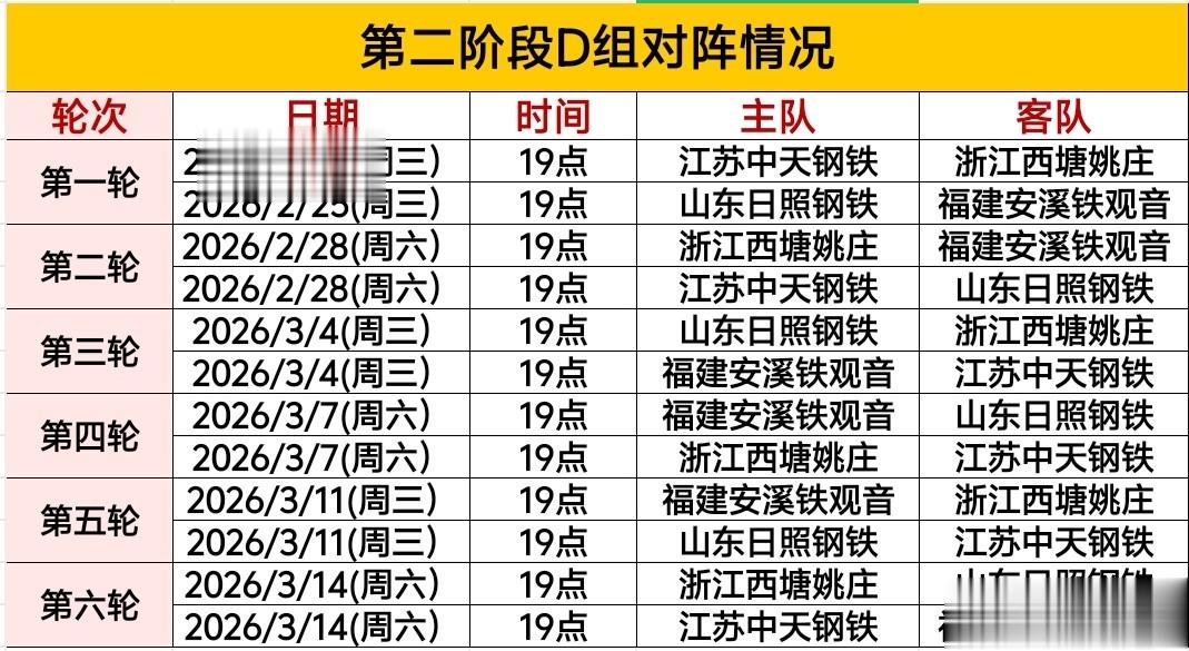 D组比赛时间表
