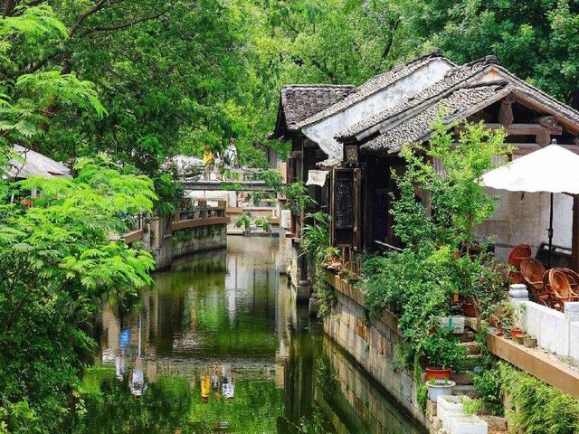 随意走进了一条无名的街道,这里依然是墙壁斑驳,刻画了光阴。城市中少见的青苔和小草,沿着墙壁的裂痕发芽。转过弯来,一片蔷薇花藤,在老墙上绽放,绿的叶,白的花,仿佛是一副经年的水墨画,吸引了不少人的目光。有不少身着汉服的温婉姑娘,撑着与我们一样的油纸伞,在镜头前摆出造型,定格年轻时最好的模样。