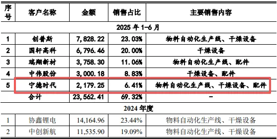 业绩承压的同时,龙鑫智能客户集中度常年居高不下,2022年至2025年上半年,公司对前五大客户销售占比分别为48.68%、64.83%、66.95%、69.32%,呈逐年攀升态势。与此同时,龙鑫智能客户结构引发关注。招股书显示,报告期内,公司前五客户频繁更换:2022年前五客户仅两家留存至2023年;2023年五大核心客户2024年集体“消失”、全部跌出前五;2025年上半年仅宁德时代一家老客户勉强留存,排名从第三滑至第五。