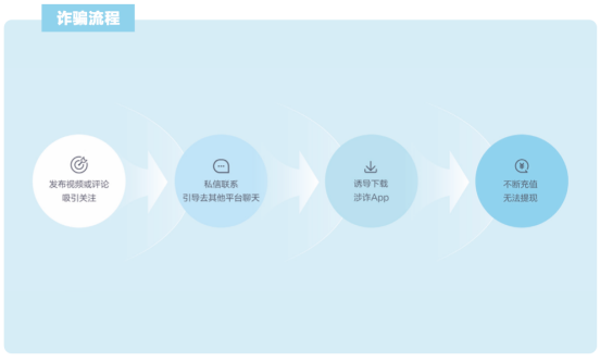 “导流至第三方App”诈骗则因作案环节更复杂、隐蔽性更强成为重点防控难点。黑产分子通过打造虚假人设,以“交友恋爱”“高佣金兼职”“稳赚理财”“色情服务”等为诱饵,将用户从抖音导流至站外社交、投资等涉诈App,在平台监管视野外实施诈骗,此类诈骗常伴随“网恋转账投资”“先垫资后返利”等套路。抖音提醒用户,需坚决警惕此类邀约,不通过非官方渠道下载任何不明App,避免落入诈骗陷阱。