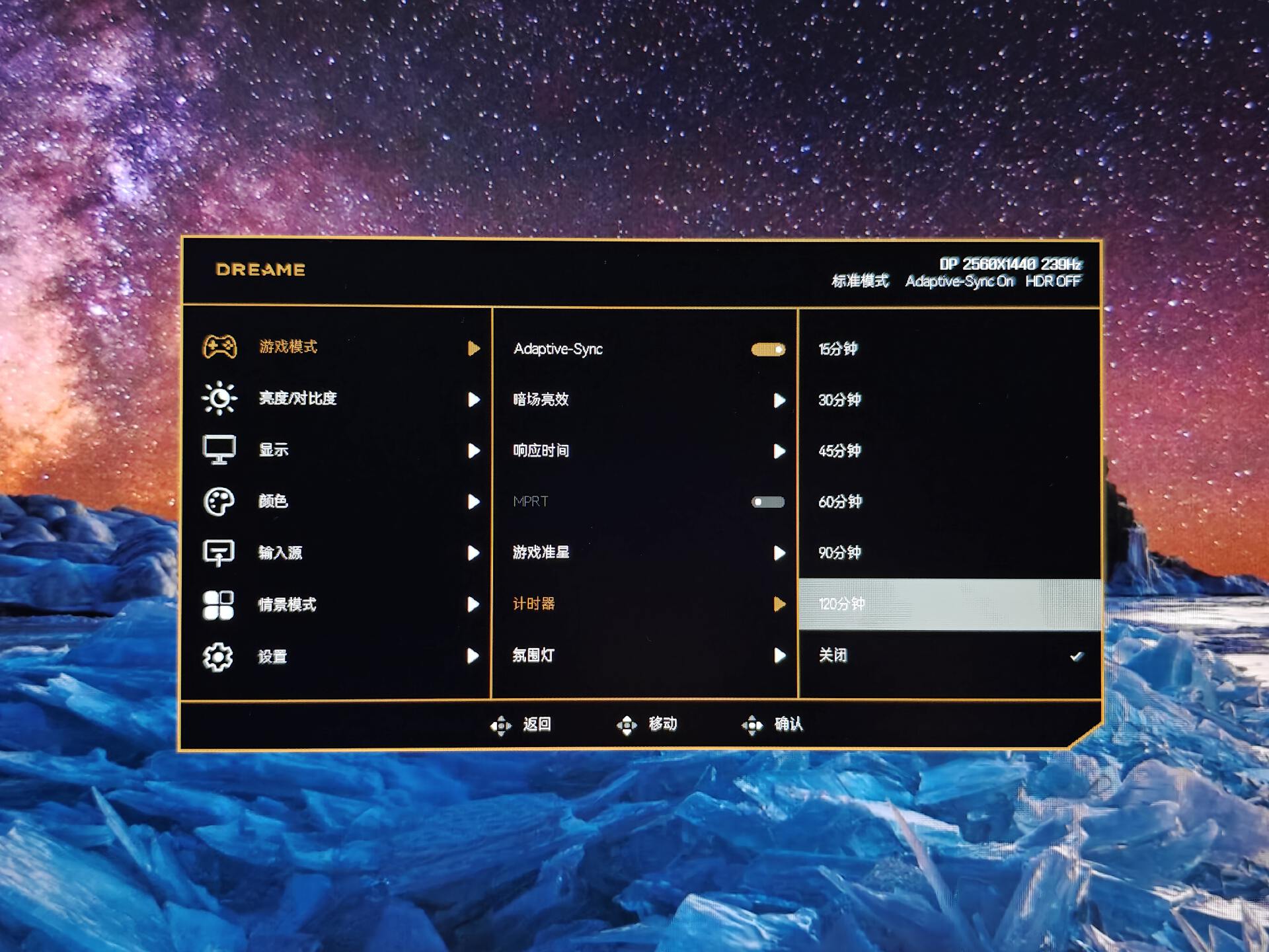 此外这款显示器还配备了计时功能(15/30/45/60/90/120),可以提醒BOSS的刷新时间,或技能CD时间,也是非常便捷贴心的功能了。