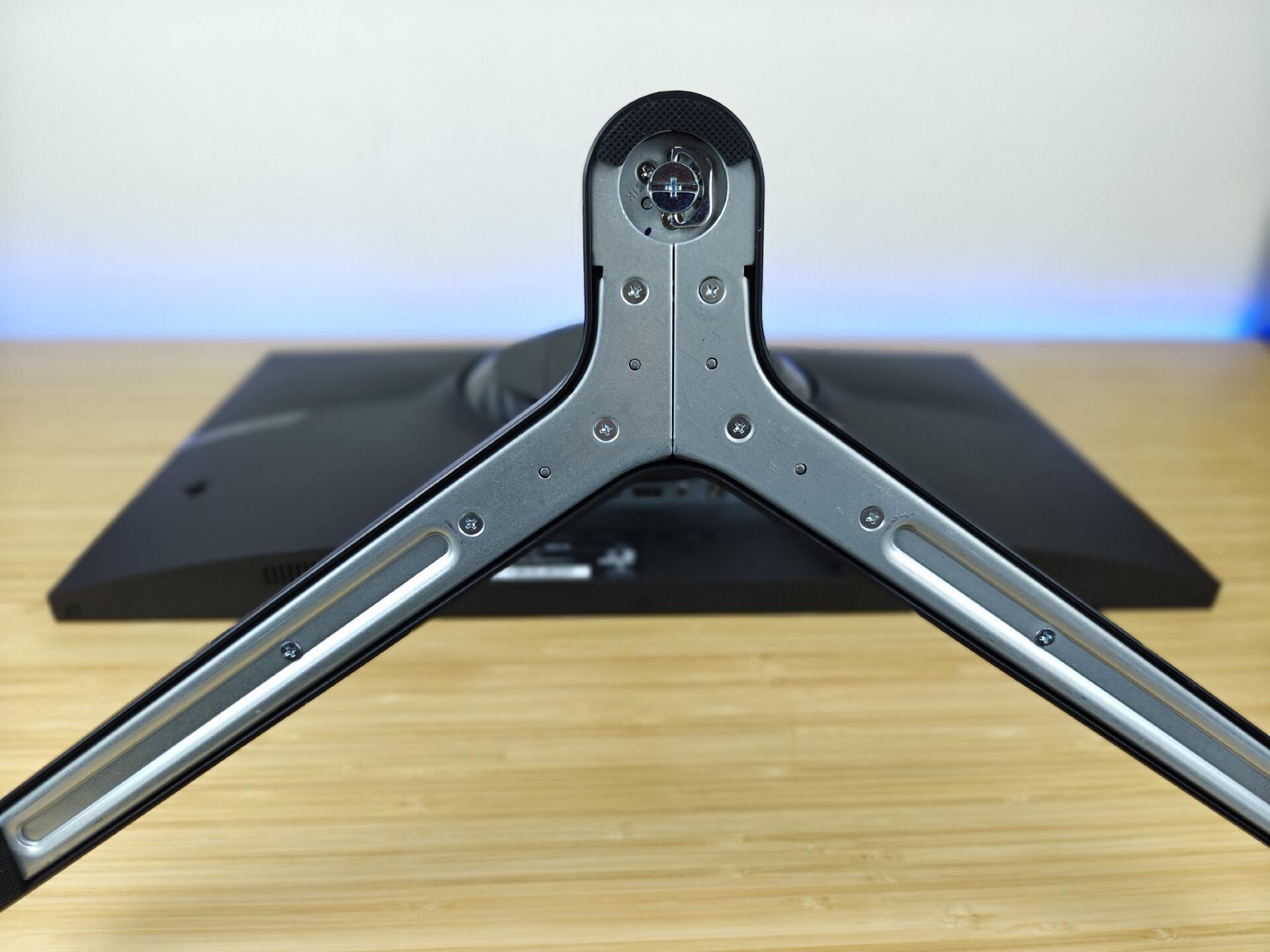 自带的支架和底座安装非常方便,完全无需额外准备工具,只要把底座底部的螺丝拧紧后将支架的卡扣卡入VESA接口内就可以了,底座很稳固,支架也很好用。