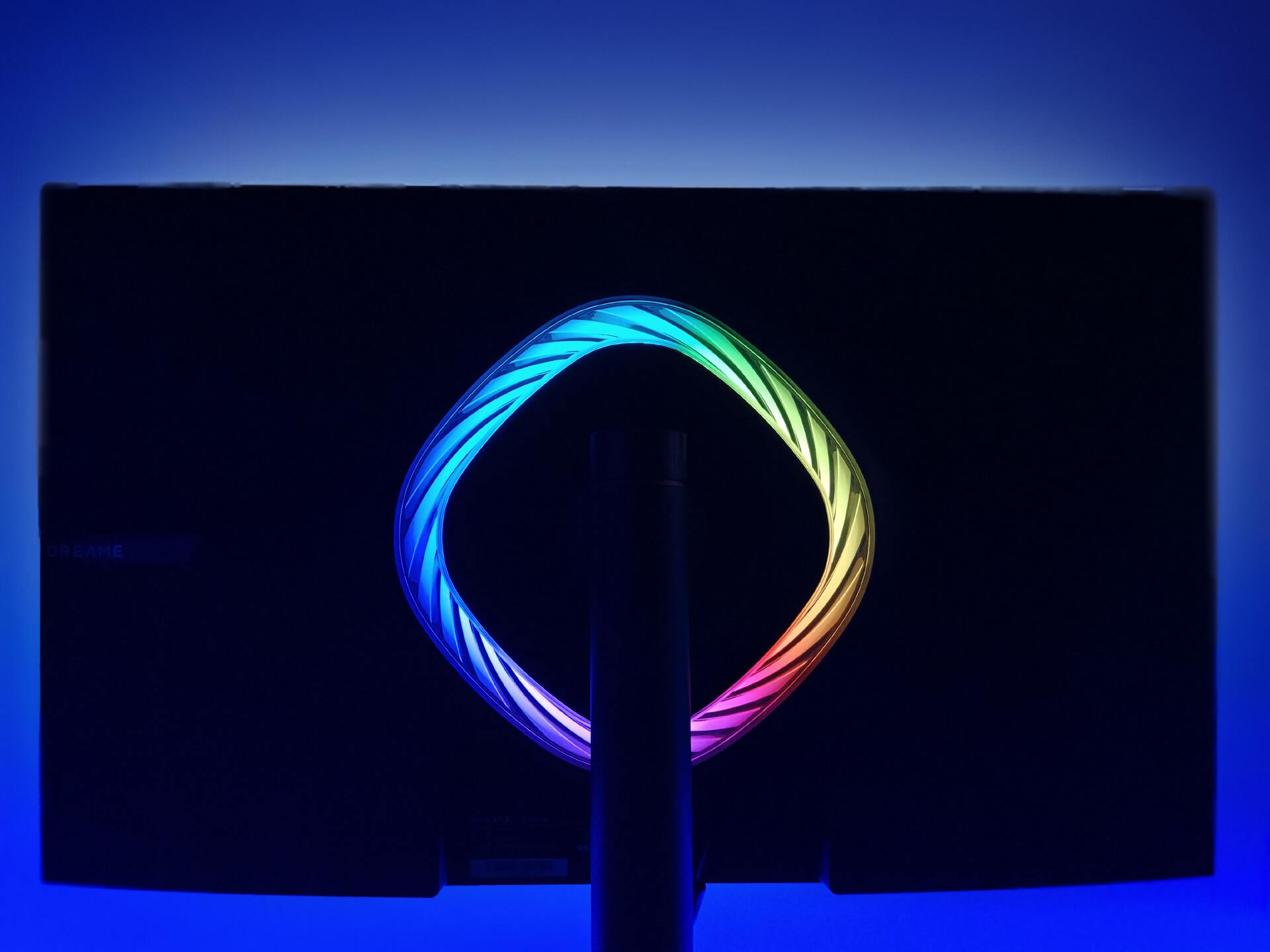 背部自带有电竞氛围灯,可以在跑马灯、呼吸灯、炫彩灯和单色光等不同模式之间快速切换,可以很好的提升桌面氛围和游戏沉浸感。