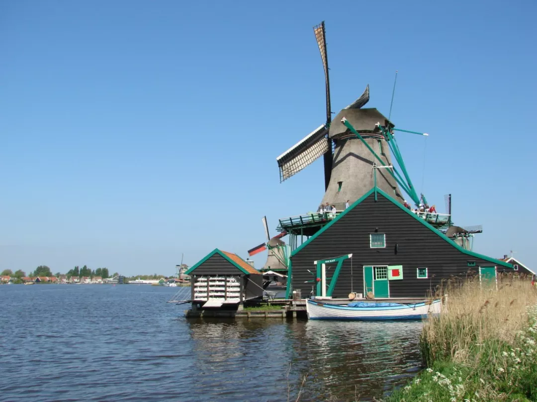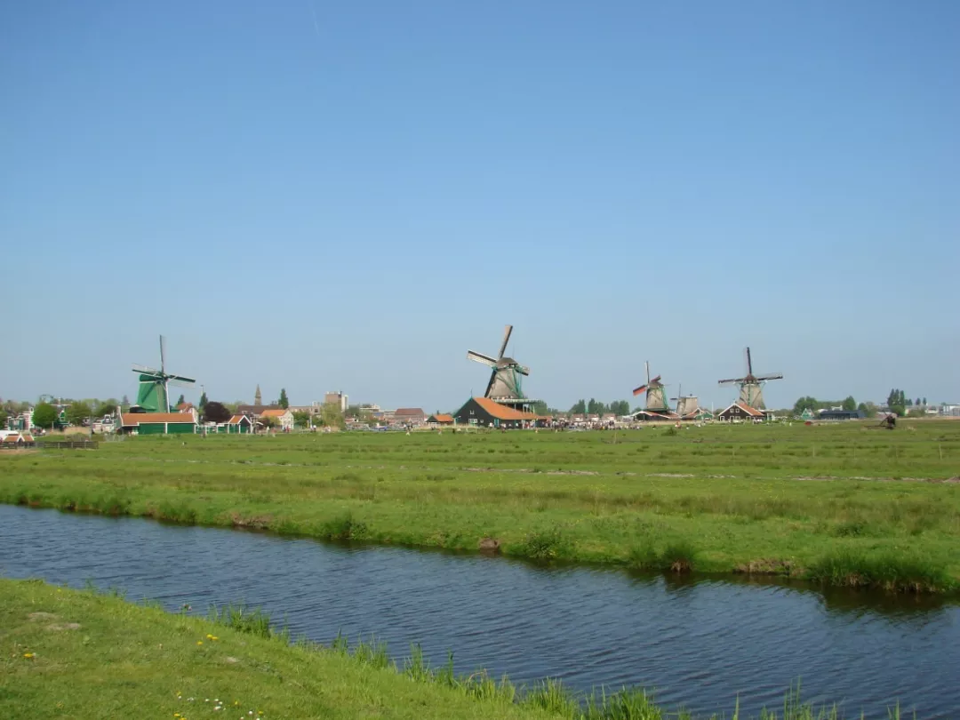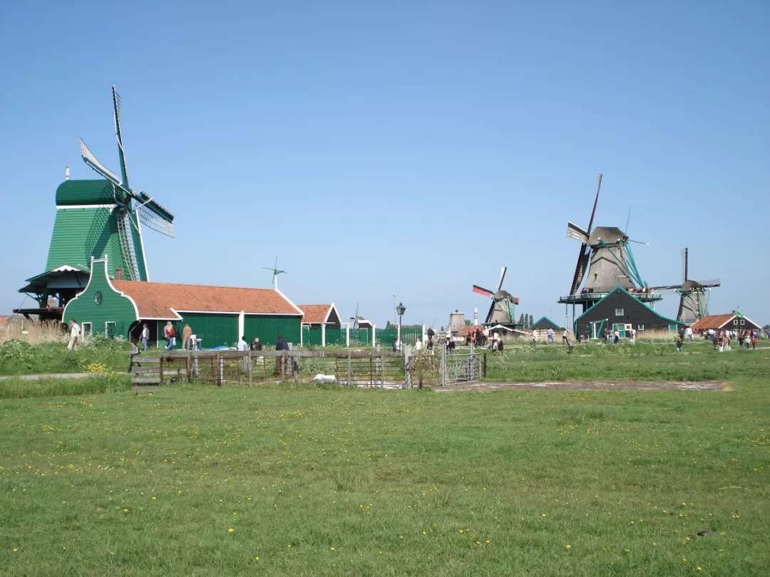 荷兰首都阿姆斯特丹北边不远处,有个著名的旅游胜地风车村,荷兰语叫Zaanse Schans,又名桑斯安斯风车村。