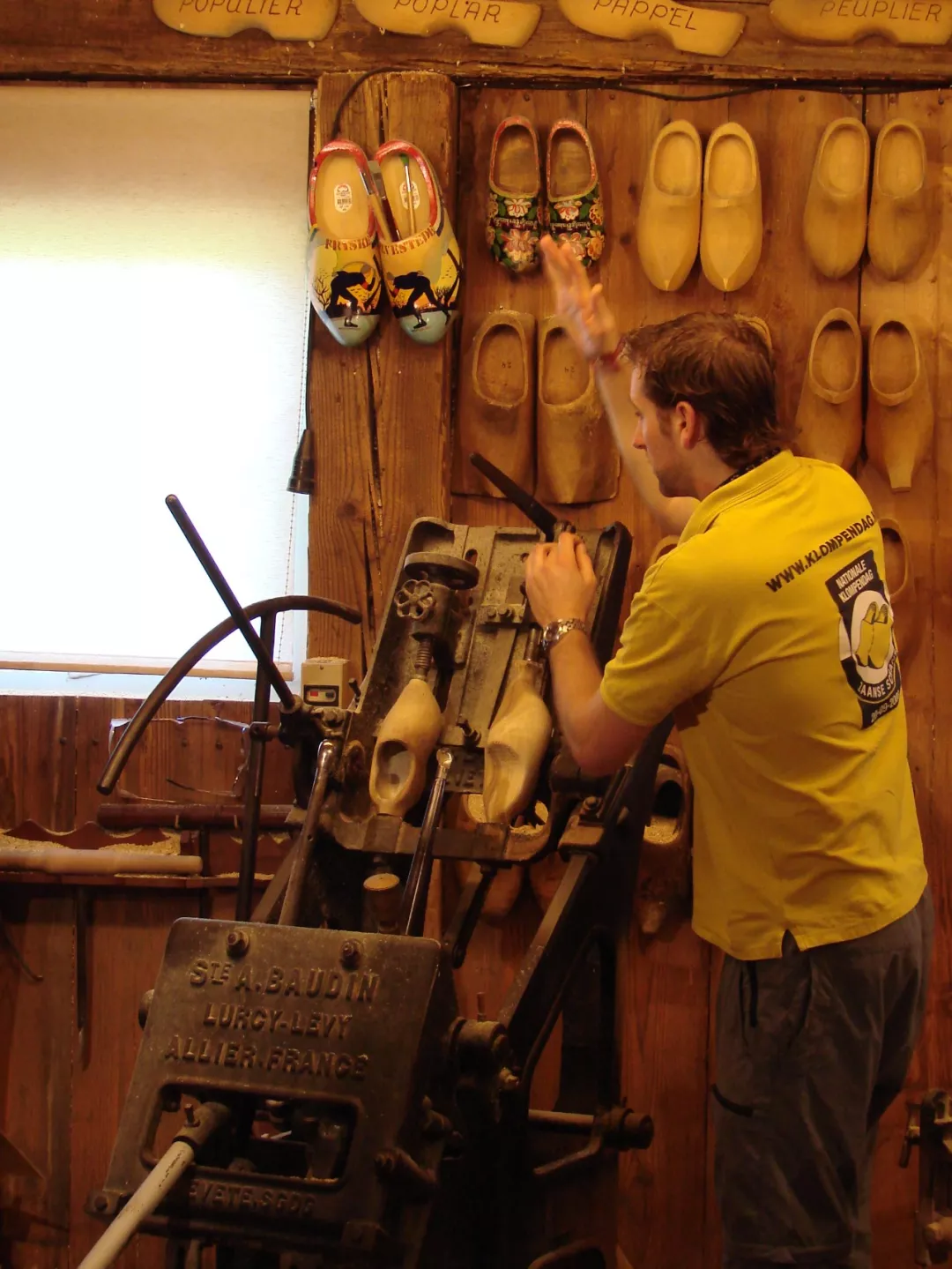 在木鞋博物馆中,会有专业人士演示如何制作木鞋的过程。