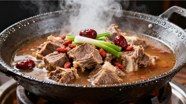 选一个闲暇的午后或静谧的黄昏,将肥瘦相间的羊肉切块,冷水下锅焯去血沫,再与姜片、葱段一同放入陶锅。炉膛里的炭火燃得正旺,橘红色的火焰舔舐着锅底,陶锅渐渐升温,羊肉的肌理在热力中慢慢舒展。起初是细微的气泡在锅底悄悄聚拢,而后便咕嘟咕嘟地翻滚起来,乳白色的汤汁裹挟着肉香、骨香,混杂着隐约的香料气息,一点点漫出锅盖的缝隙,在屋里弥漫开来。这香气不似夏日菜肴那般清冽,也不似秋日食味那般厚重,它带着炭火的温润与羊肉的醇厚,绵长而亲切,像一双温柔的手,轻轻抚平了冬日里所有的浮躁与寒凉。