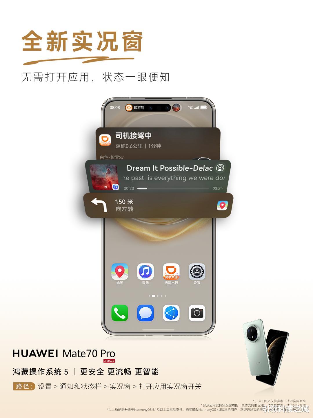 此外,全新“实况窗”也迎来大幅升级,化身为锁屏界面的信息聚合中心——锁屏卡片、消息中心还有通知栏的胶囊窗口,现在都能实时显示更多关键应用的动态,外卖、打车、飞机高铁行程,甚至是支付宝的停车计费,一目了然。