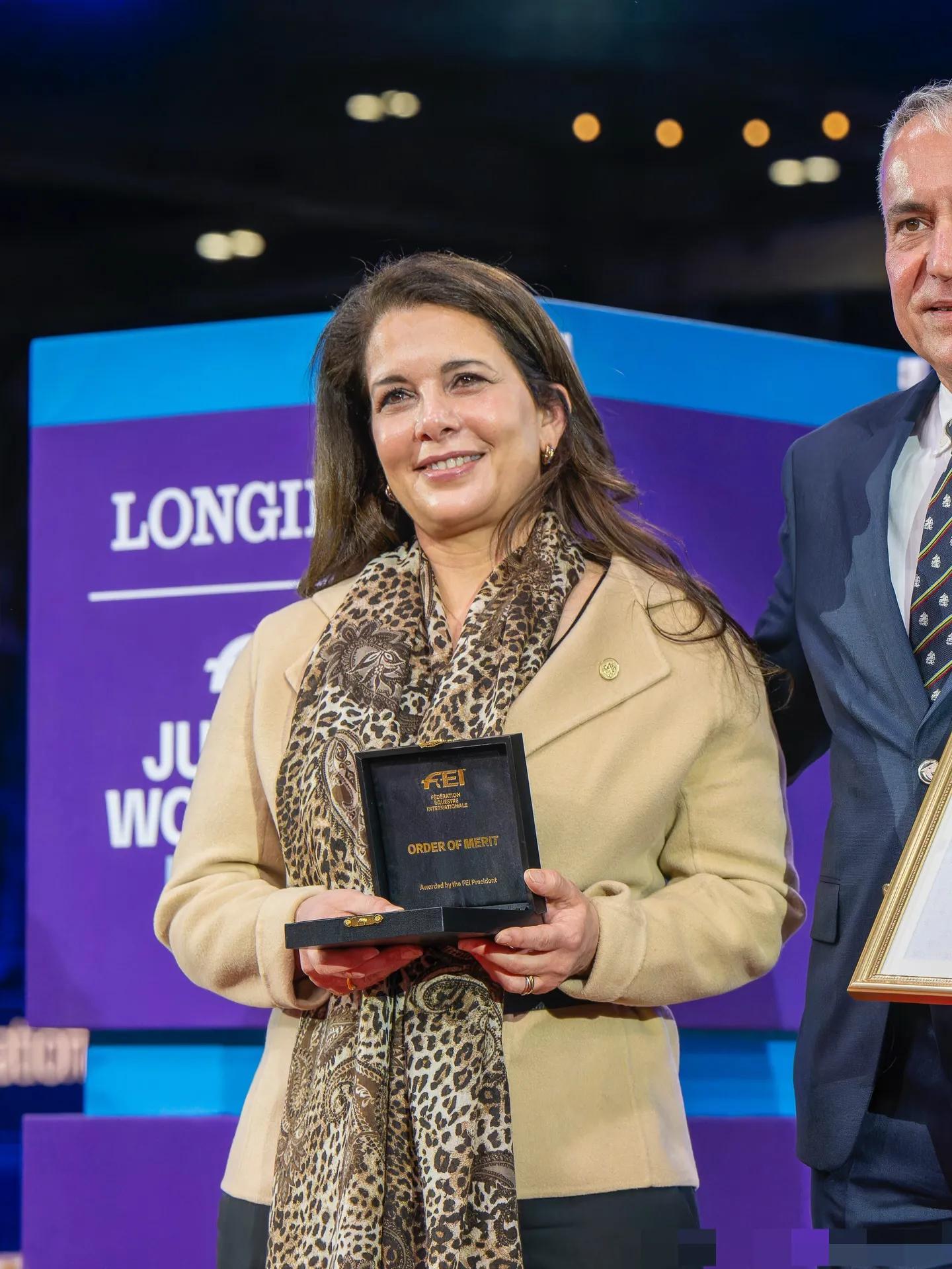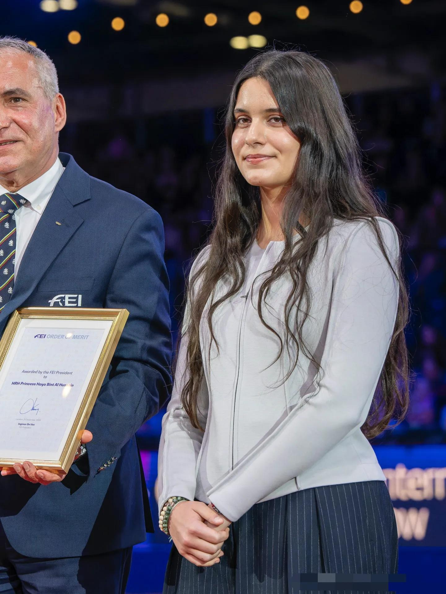 12.21 在伦敦国际马展上,迪拜王室前王妃哈雅被国际马联主席授予了最高荣誉勋章,女儿阿加利亚也陪同出席!