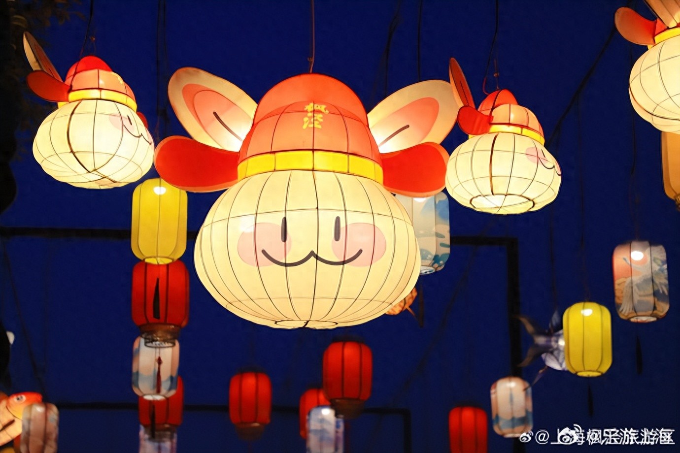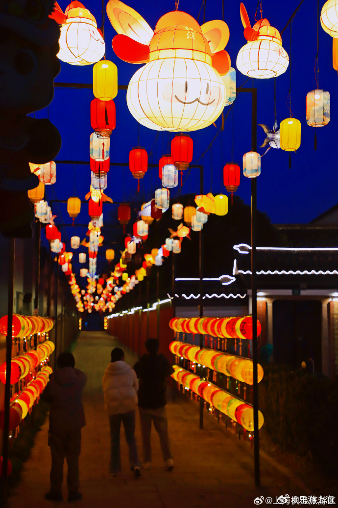 枫泾古镇作为“1+6”非遗灯会分会场,头戴状元帽的“兔小布”携五大“泾”彩亮相,市河沿岸灯影与古桥老屋相映成趣,