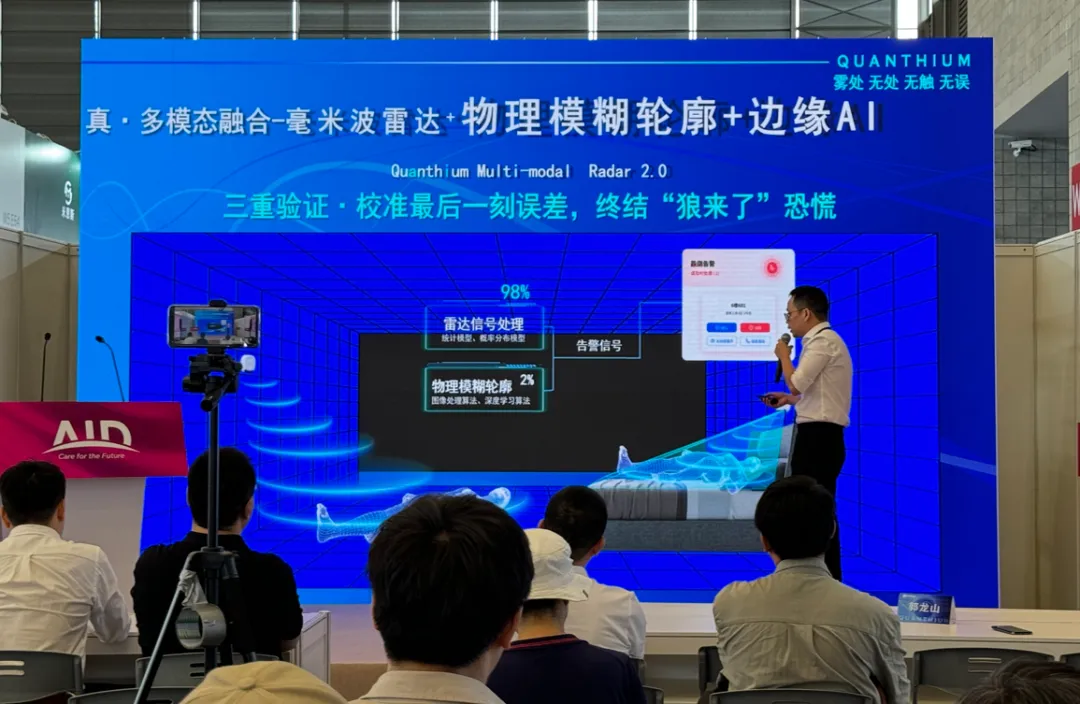 发布会上,旷时科技揭晓基于单设备“真·多模态融合”技术的智安系列雷视融合全隐私多功能跌倒监测仪与体征监测仪,针对毫米波雷达产品在复杂场景中误报率高、数据维度单一等核心痛点,新品通过毫米波雷达 + 物理模糊轮廓+ 边缘AI的深度融合,实现 “单一设备 = 多重守护”。