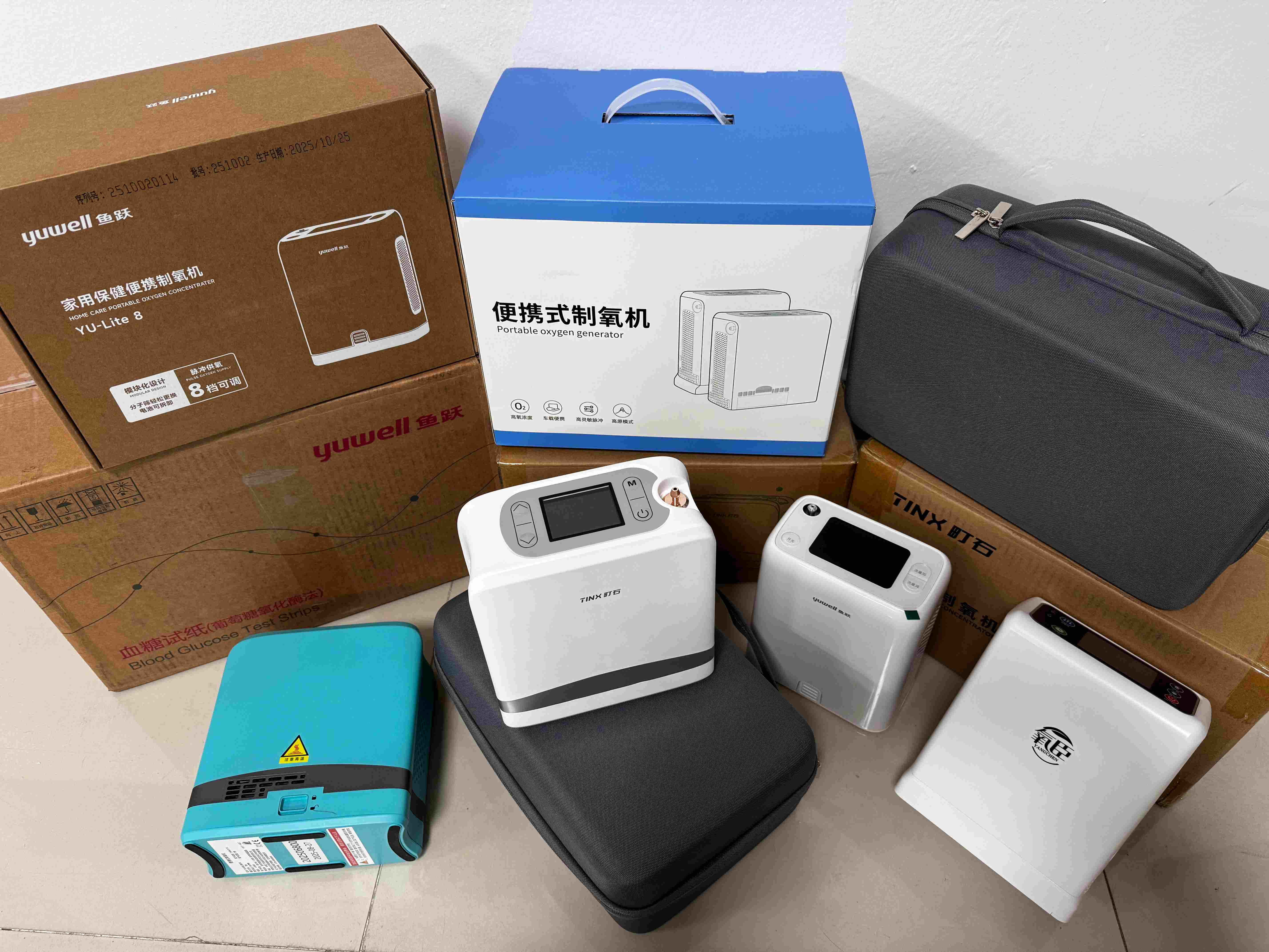 ( 下图是部分测试使用过的制氧机产品图)