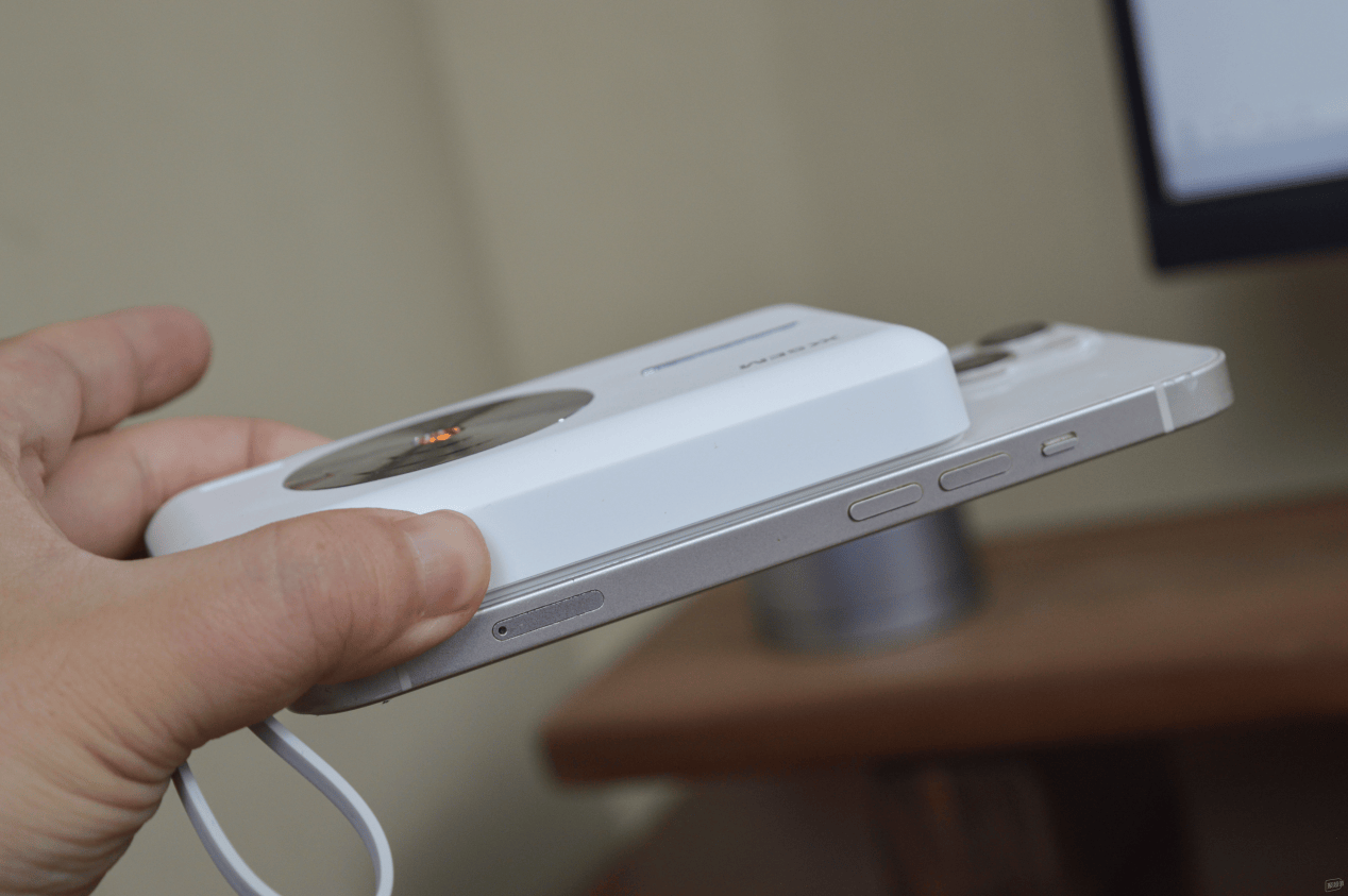 西圣PB无线充电宝小巧便携,204g重量做到轻若无感,出门可以直接当个时尚单品使用,贴住手机后并不遮挡镜头。整机也是采用高质量材料和严格质量控制,并通过3C专业认证,保证产品的质量和可靠性,让每个用户都能用得安心、放心。