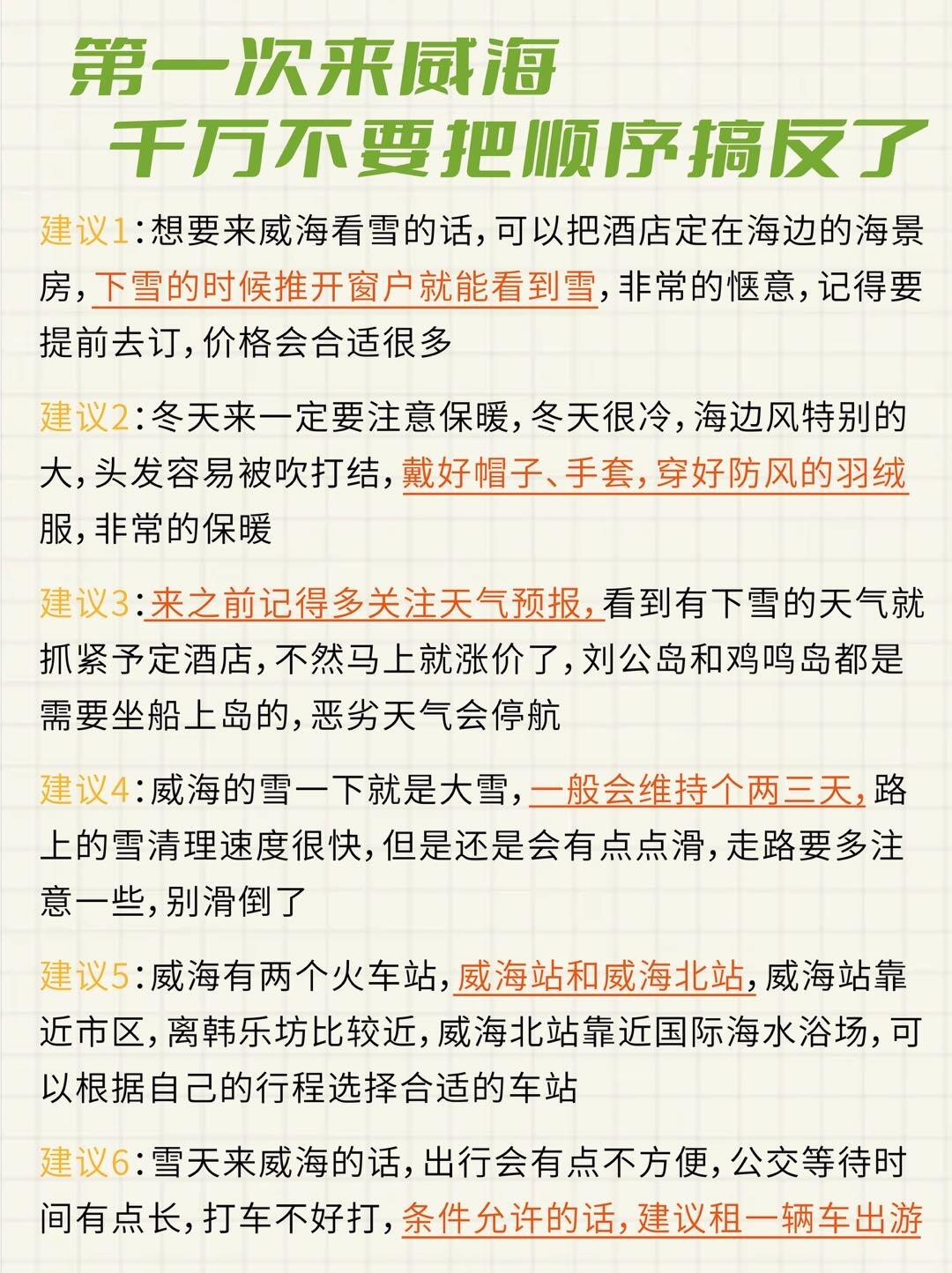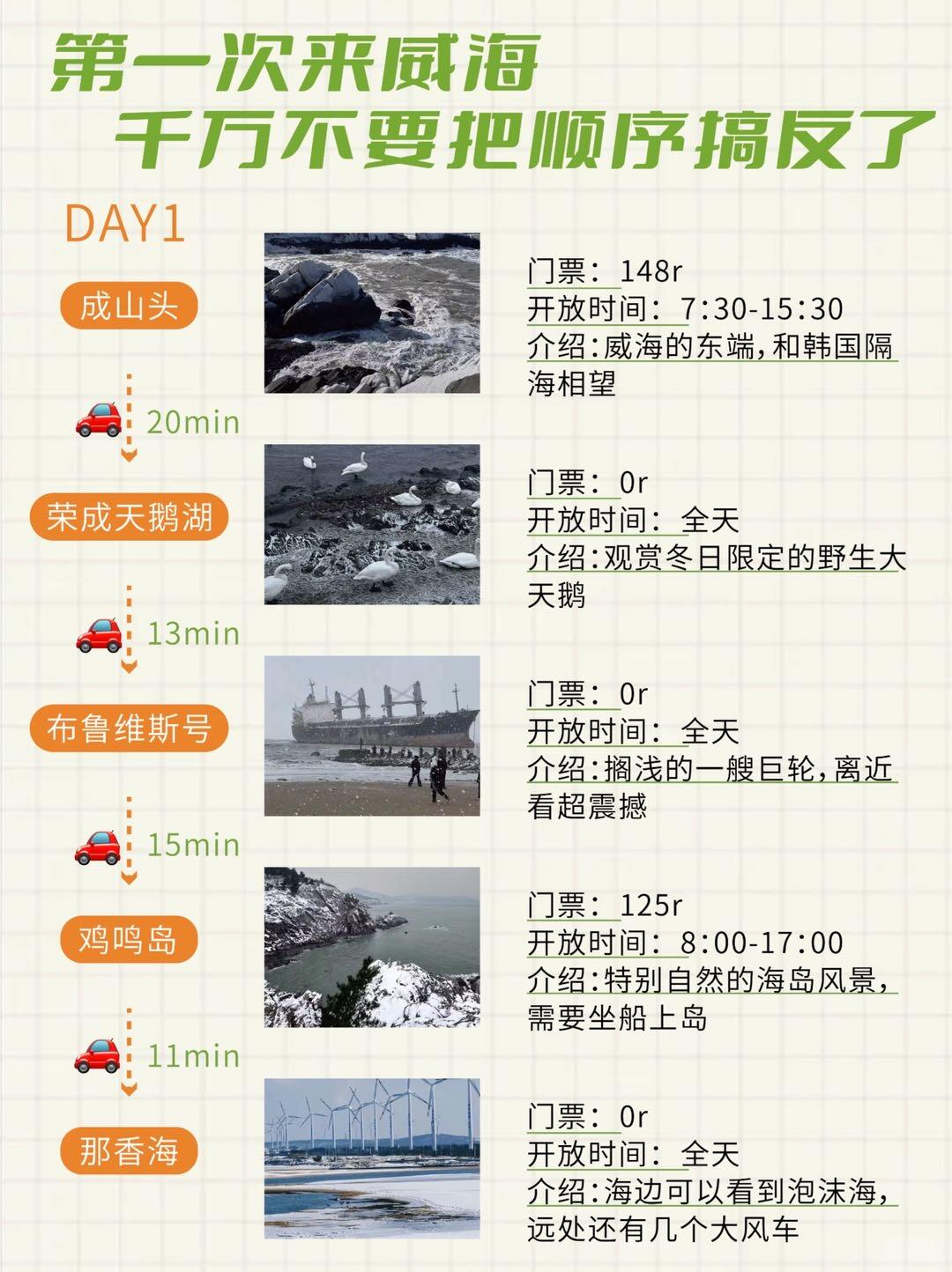 马上准备去威海游玩了,拜托🙏本地闺蜜给我做了一份威海游玩攻略冬天❄️,发出来让大家看看合理不合理