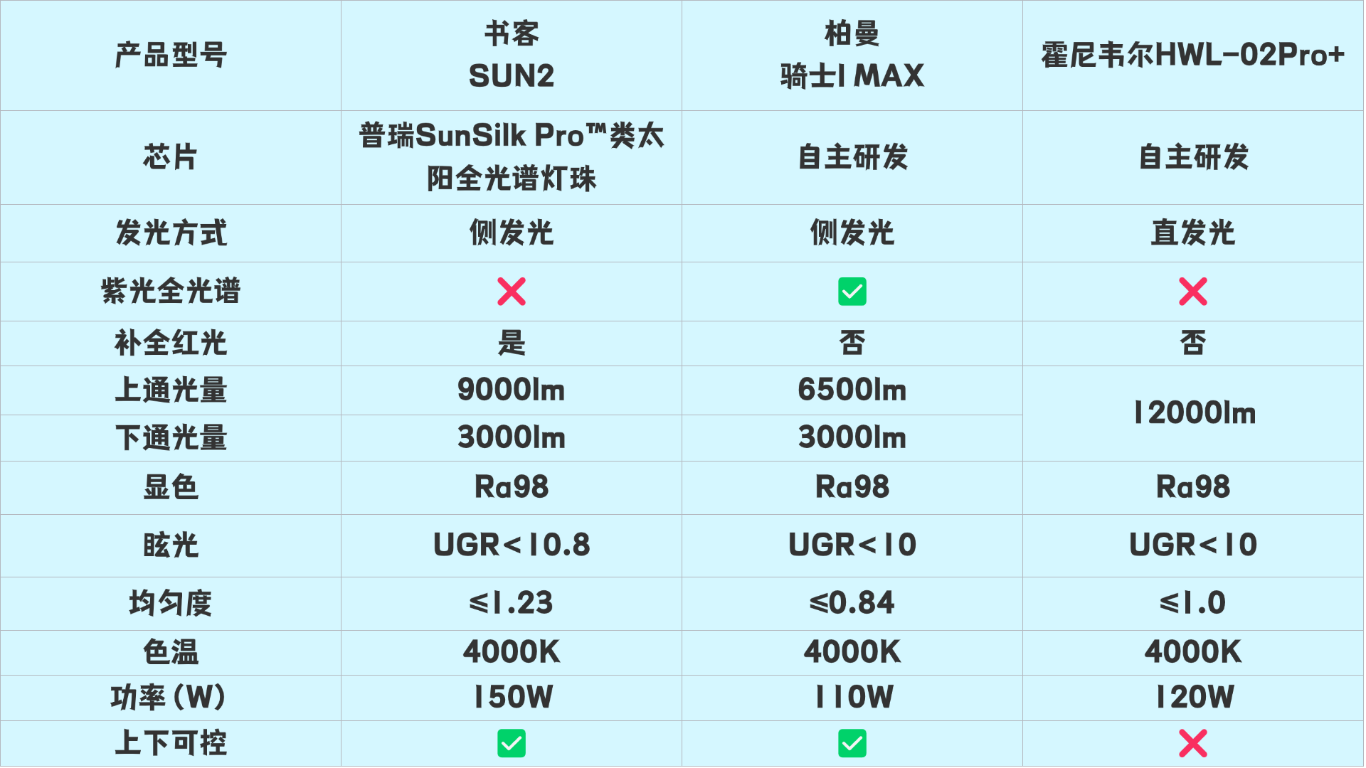 柏曼骑士I MAX>书客SUN2>霍尼韦尔HWL-02Pro+