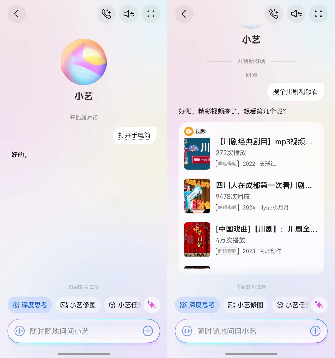 现在,我爸已经完全掌握了和小艺用四川话聊天的技巧,并且逢人就炫耀他的“老乡”手机,给大舅打个电话、打开手电筒、搜个川剧视频、打开华为视频……小艺都能安排得明明白白。