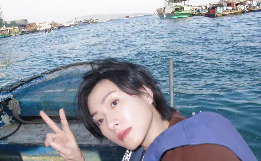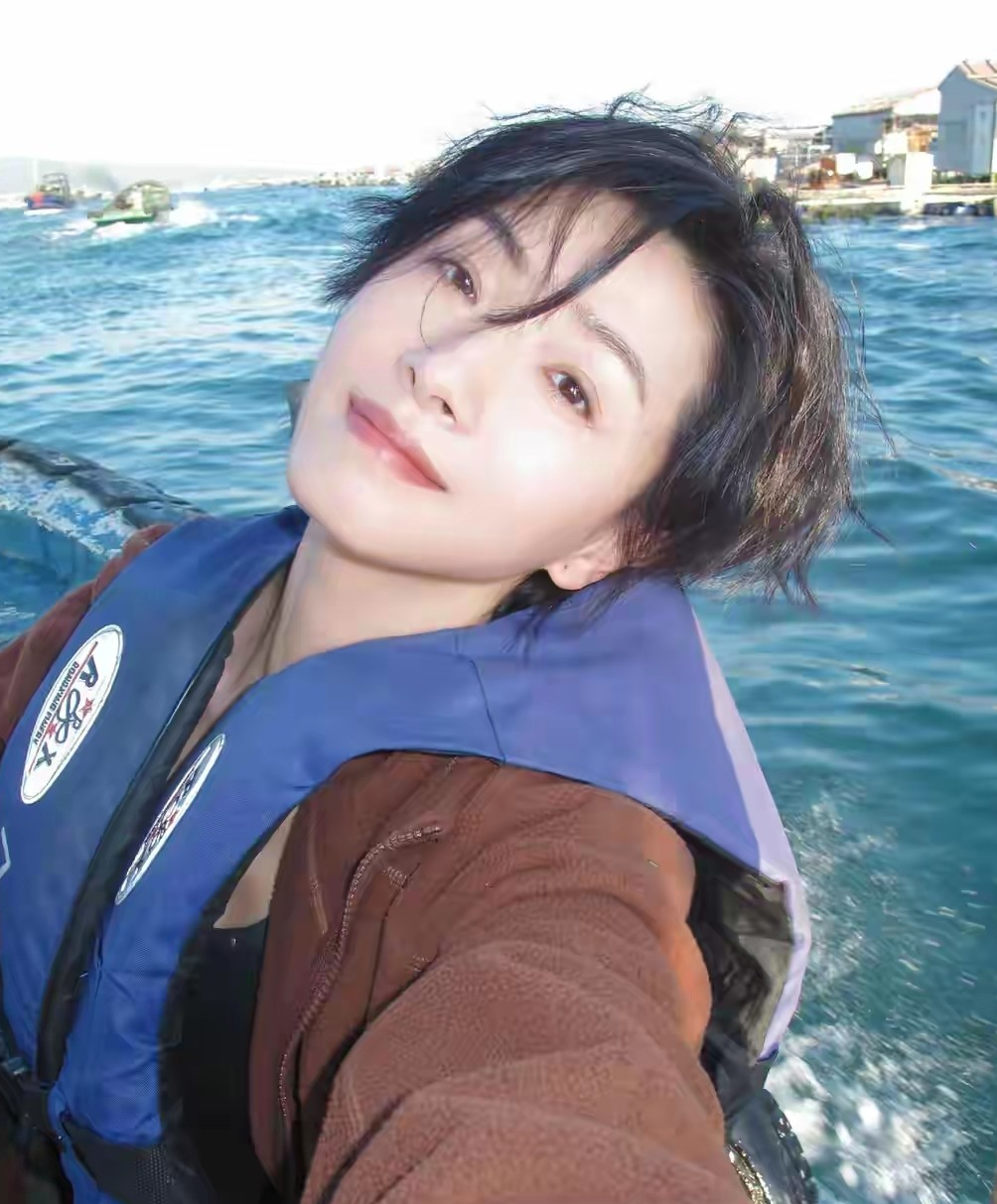 照片里,她坐船出海,站在甲板上被海风轻轻吹着,阳光洒在身上,整个人又飒又松弛。穿搭简单清爽,随性又出片,完全是度假该有的样子。远处海水蓝得透亮,浪花轻轻拍着船身,画面干净又治愈。