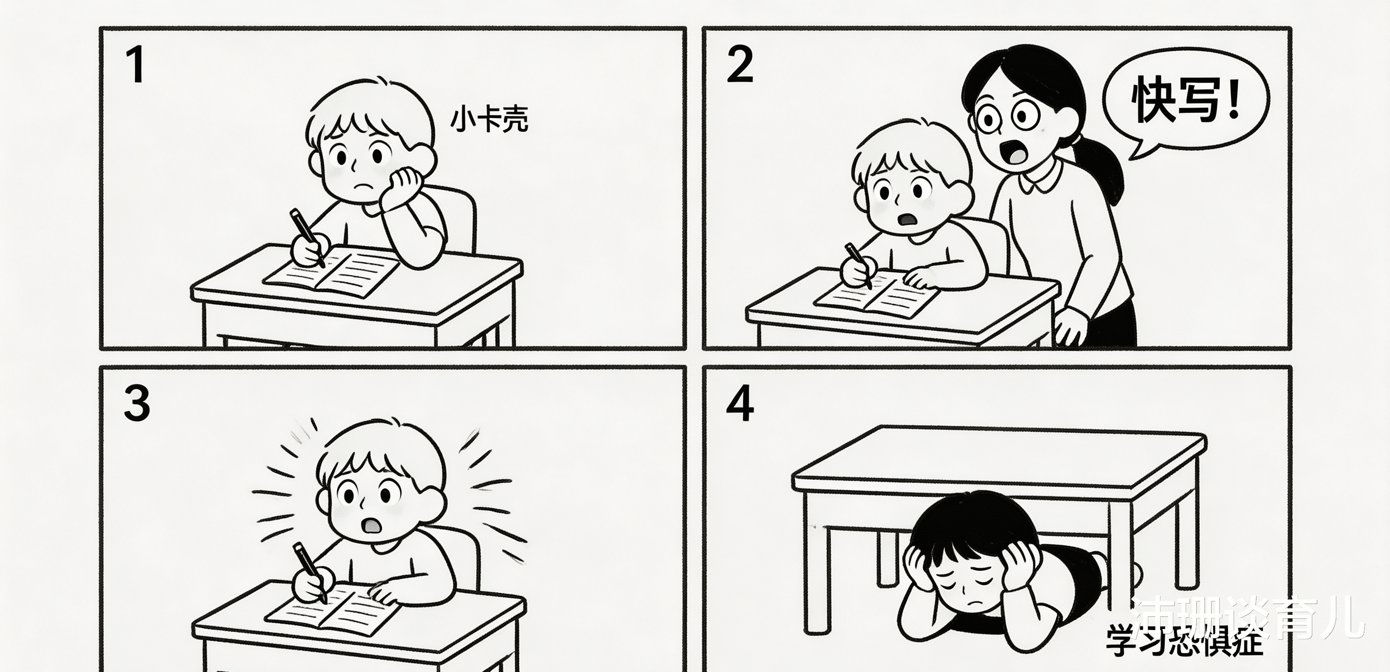 这顿吼,等于又给他的大脑警报添了把火。压力更大,更想逃,更学不进去。几次下来,孩子直接把“写作业”和“被骂、痛苦、恐惧”划上了等号。以后一坐到书桌前,身体就紧张,恶性循环就开始了。