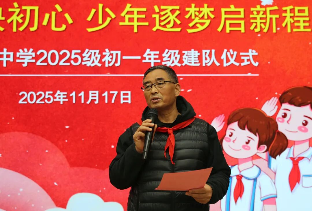 为切实增强少先队员的光荣感与组织凝聚力,将爱党爱国的赤诚初心融入血脉,促进我校少先队工作的蓬勃发展,2025年11月17日,北京市古城中学举行了“薪火相传映初心 少年逐梦启新程”初一年级少先队建队仪式。校党总支书记刘冰、大队辅导员郭菲、初一年级年级组长、班主任老师及全体少先队员出席了本次仪式。建队仪式由初一年级汪子博和梁瑞珊主持。