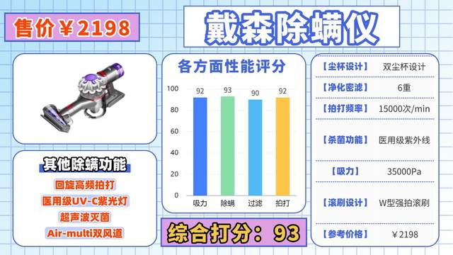 真人评价:外观科技感十足,操作体验人性化,一键倾倒尘桶无需接触灰尘,非常方便。多种吸头应对不同清洁场景,床褥和沙发深层螨虫都能有效清除,紫外线杀菌功能使用后感觉更安心。价格偏高,但性能确实出色。