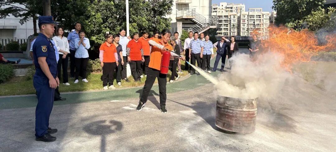 “万一真遇到初期火情,手边的灭火器就是快速控火的‘实用利器’”,消防宣传员一边强调灭火器的重要性,一边详细拆解灭火器的使用步骤和操作要领。参训人员逐一上前实操,对模拟火点进行灭火,从提罐、拔销到瞄准、按压,消防员全程在旁指导,及时纠正不规范动作,“大家灭火时别紧张,先确保自身安全,站在上风向再操作!”