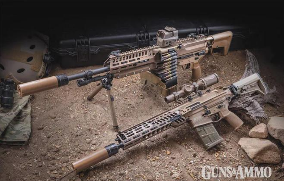 M7和M250这两把枪械的枪口动能、射击距离、对目标的侵彻能力等,均高于发射5.56×45mm NATO 北约标准步枪弹,M4A1和M249。