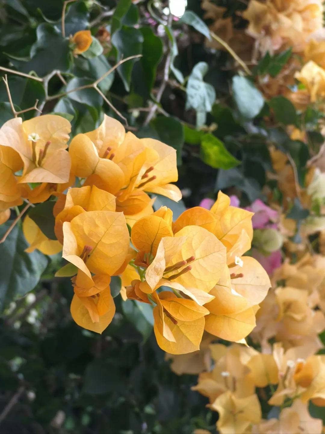 聊完历史,必须说它的“全球重播”之路,堪称植物界的“顶流巡演”🔥 19世纪开始,三角梅从欧洲出发,一路漂洋过海,传到了亚洲、澳洲。1872年先落户中国台湾,后来又扎根福建、广东、云南,一到南方就彻底“躺平适配”,从外来客变成了南方城市的“颜值担当”,深圳、厦门还把它当市花,满街都是它的身影。