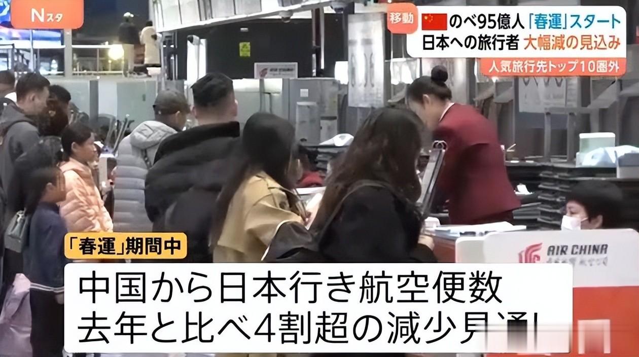 与此同时,中日之间的旅客流量和航班数量也大幅减少,多条热门航线暂停运营,大阪、东京等主要城市的机场,中日航班柜台变得十分冷清。
