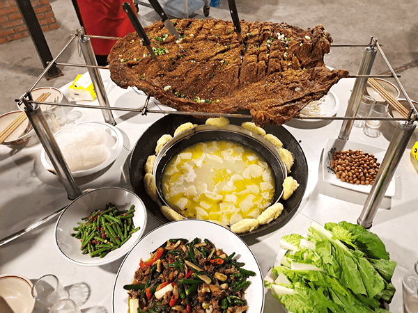 陈普发详细介绍企业发展情况,磐石玉寨始终秉承“热情温暖万人心,双手巧做千家饭”的经营理念,深耕涪陵本地餐饮与乡村服务领域,主营烤全羊、烤鲜排、烤鸡、柴火土鸡(吃一只送一只)等特色套餐,同步推出羊肉汤锅、泡菜鱼火锅、铁锅炖土鹅、特色农家菜等经典菜品,承接刨猪汤宴席、乡村酒席一条龙服务,同时提供焦石正宗土鸡供应、陈家院子民宿等多元服务,形成“餐饮+民宿+宴席服务”的一体化经营模式。