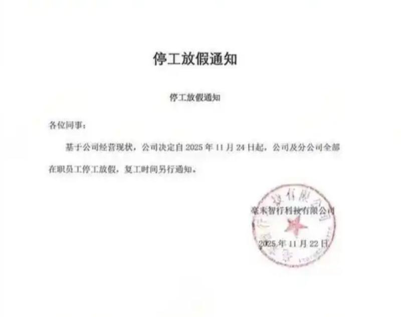 11月24日,一则“停工放假通知”让智驾行业再起波澜。