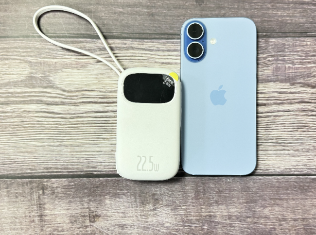 配置方面也挺实用,10000mAh 的容量,额定容量 6000mAh,日常通勤给手机充个一次多完全够用。22.5W 的主流功率,应付日常补电速度不拖沓,应急回血很省心。支持磁吸 + 自带线双模式充电,随手一贴就能磁吸快充,忘带线也能直接用自带线充,不用额外折腾;LED 灯还能直观判断剩余电量,不用瞎猜。不过有个小细节得提一嘴,自带线的长度比较固定,有时候想边充电边拿远一点用手机,会觉得线有点受限,稍微有点不方便。