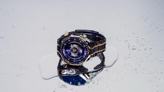 细节之处最见真章,表圈上那六段纯手工镶嵌的18K黄金,形似掌控方向的轮舵;黄金表冠则如暗夜灯塔,寓意指引前行。其陶瓷表圈字符甚至采用了真金真空离子镀膜技术,确保金色持久均匀闪耀。这种低调的显贵,精准契合了高端用户对身份标识与审美品位的双重需求。